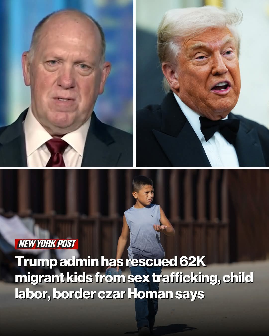 More than 62,000 migrant children have been rescued by the Trump More than 62,000 migrant children have been rescued by the Trump administration and saved from evil conditions, including sex trafficking and forced labor after they crossed the border without parents under the Biden admin, border czar Tom Homan said. and saved from evil conditions, including sex trafficking and forced labor after they crossed the border without parents under the Biden admin, border czar Tom Homan said.