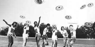 Origin: The concept originated from college students in New England throwing empty pie tins, often shouting "Frisbie!".