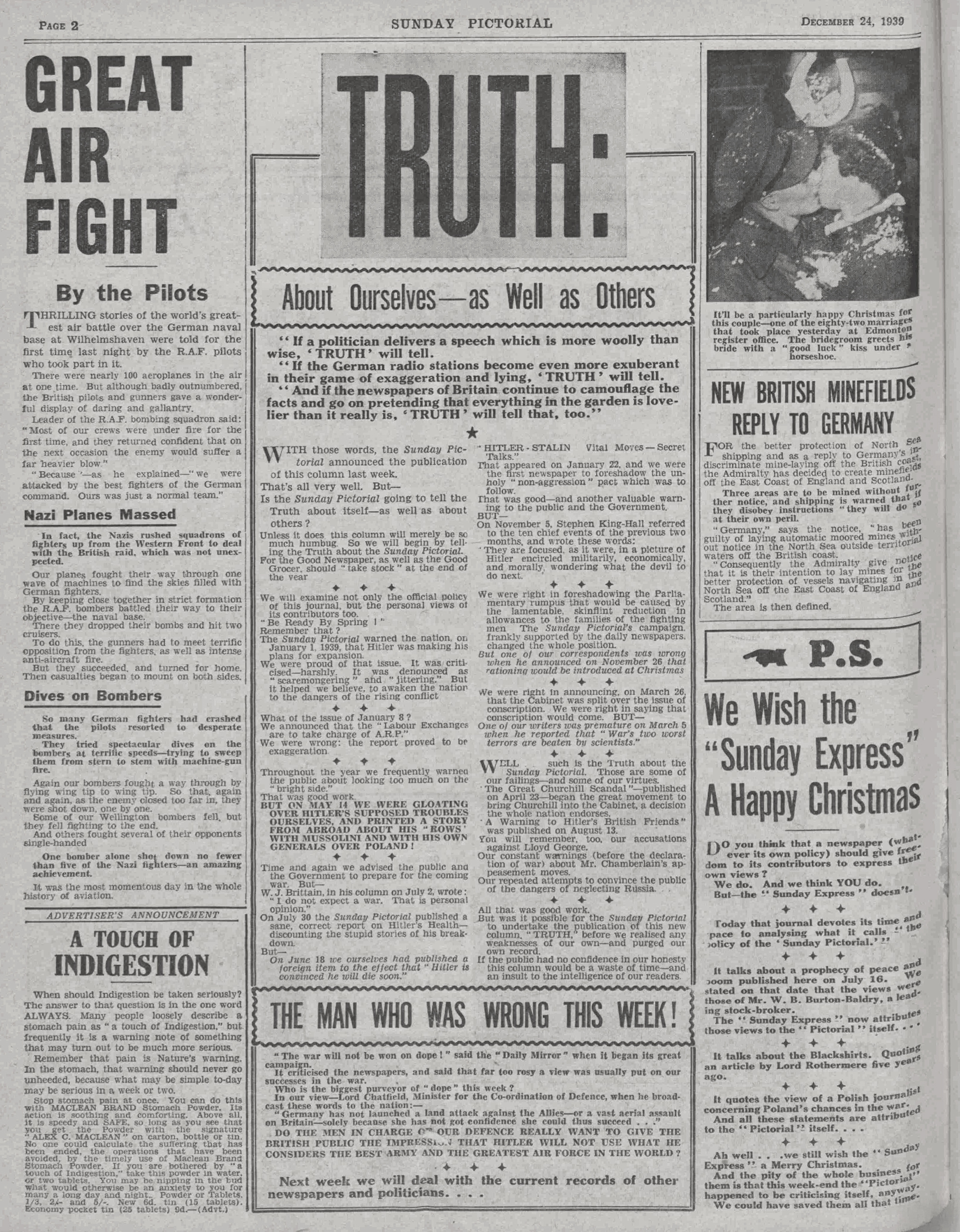 Here's the first five pages of the Christmas Eve 1939 issue of the Sunday Pictorial - the first Christmas of World War Two.