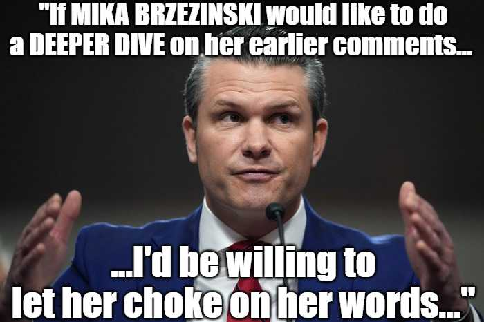 C'mon Pete, time to make DJT blush, and Mika gag...