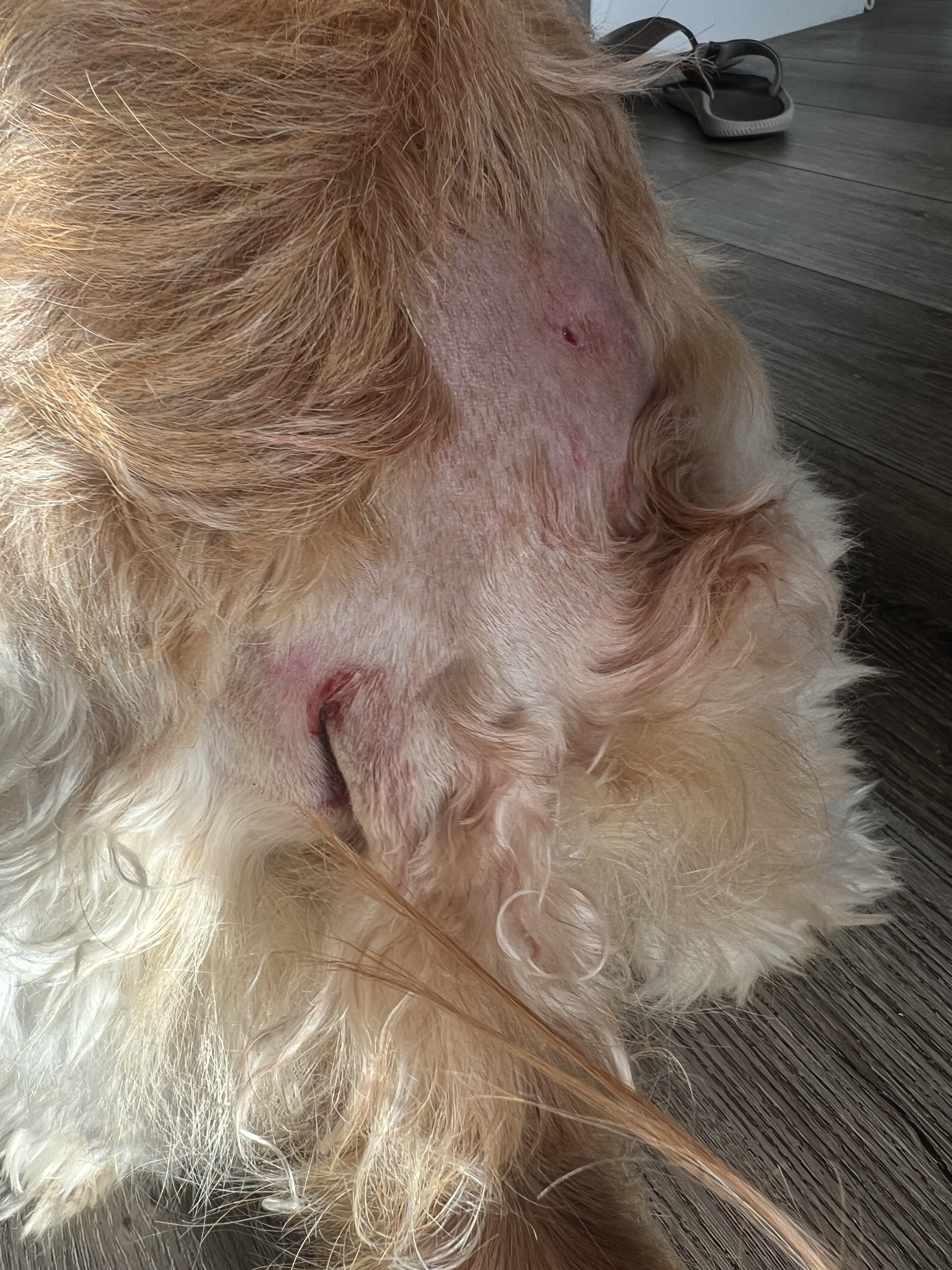 Babysitting our son’s dog, Hanz……did not realize it came with a side of street brawls. Hanz is fine. Multiple puncture wounds. Mark got a couple too only because he bent down to grab Hanz. So, we will be applying warm compresses 3X per day along with meds. Oh, and the Hanz as well.