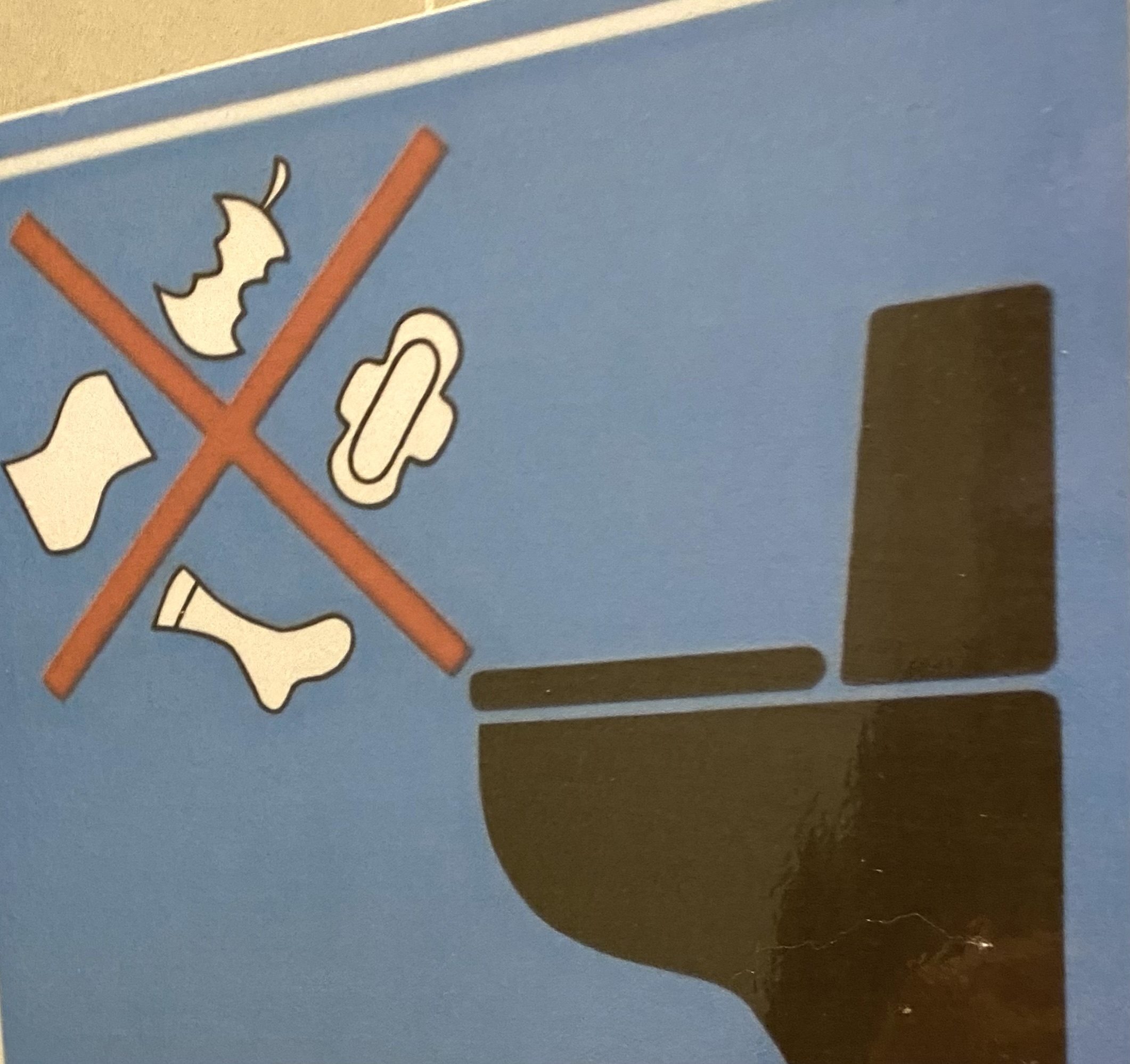 You have to post a sign to tell people not to flush apple cores, socks … down the toilet? 🤔