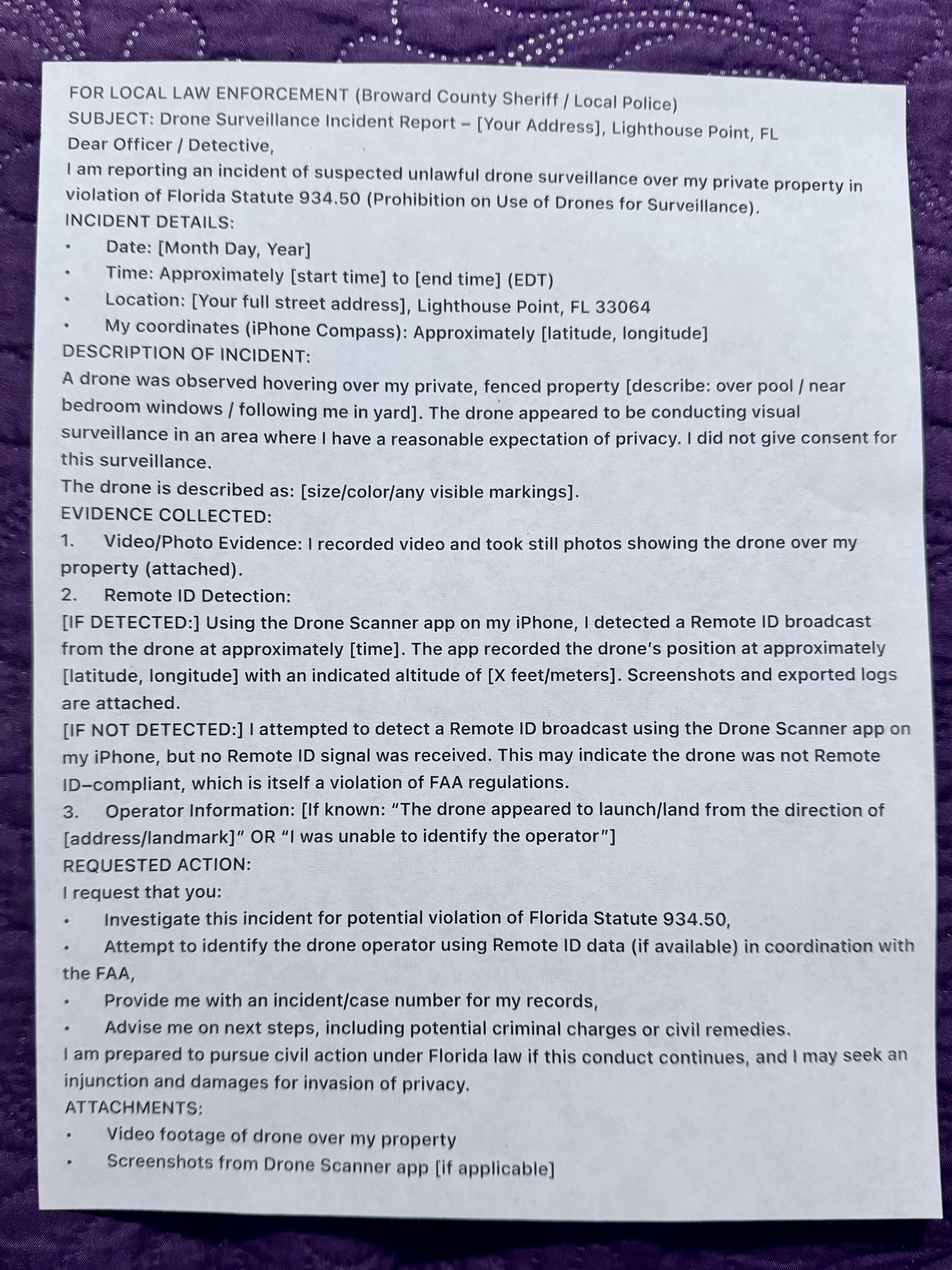 FLORIDA made a tiny step forward with the drone issue. I’ll give them an A for effort as this issue and the complaints that follow is relatively new to John Q Public.